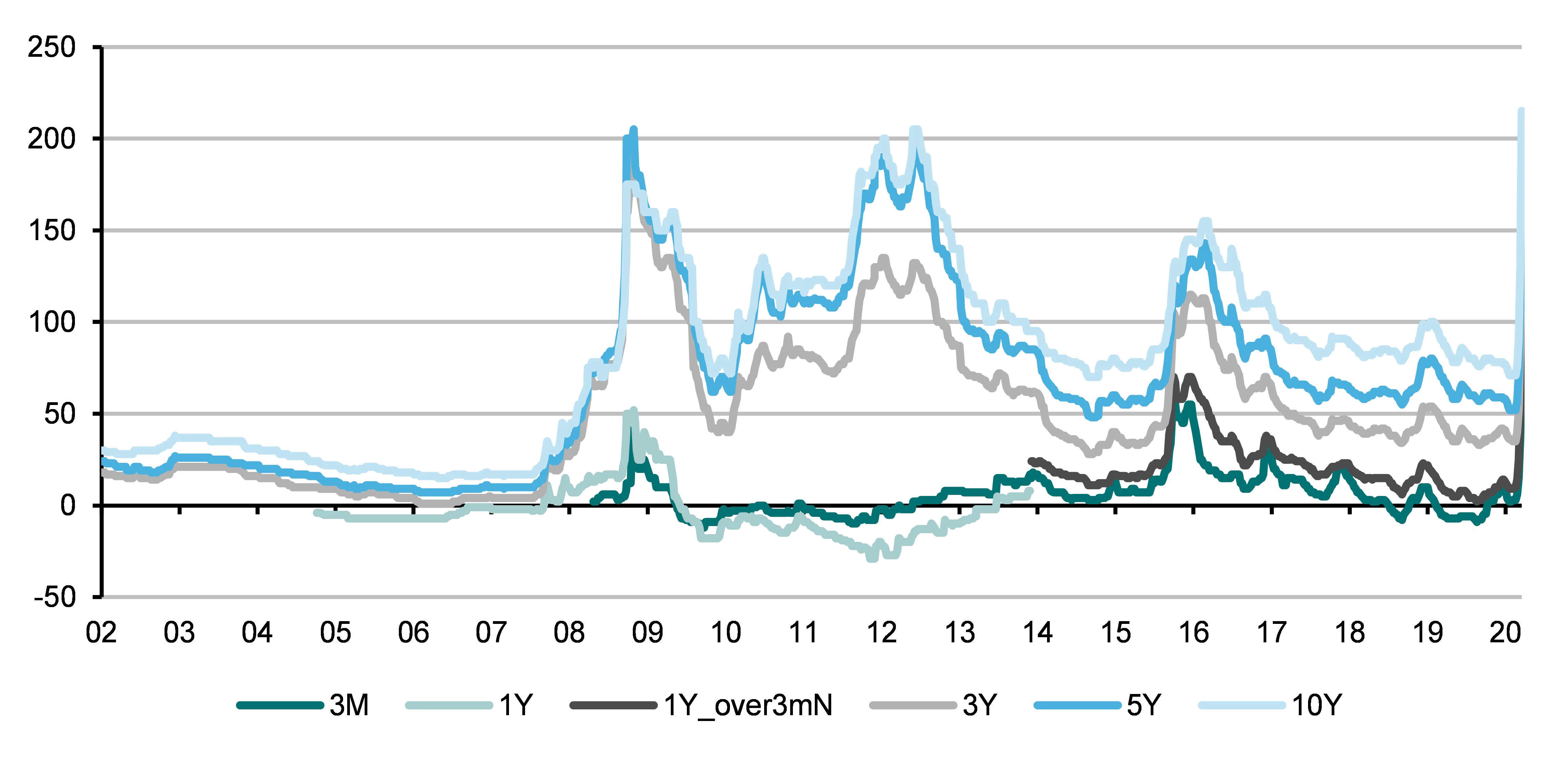 Risikoaufschläge verschiedener Laufzeiten für norwegische Banken