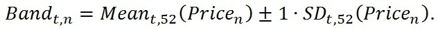 First we have to define how to detect that a trend has been established. This can be done using for instance a rolling confidence band (Figure 4). If the price moves out of the band, this will signal a trend.