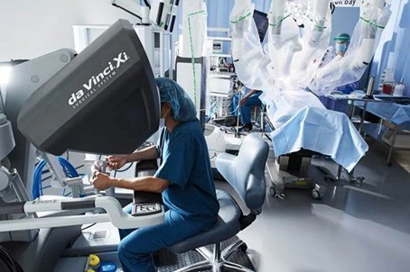 Den første robotoperasjonen ble utført i april 1985 på et sykehus i California for å ta en hjernebiopsi, der man brukte en PUMA 200, en robot som opprinnelig ble brukt i bilindustrien. Operasjonen var vellykket, men roboten ble ikke tatt i bruk i større skala. Den første roboten som ble godkjent for bruk i et større marked var RoboDoc, et system utviklet i samarbeid med IBM som ble godkjent for hofteproteseoperasjoner i Europa i 1994, men heller ikke denne ble noen stor markedssuksess. Dette skulle snart endre seg. I 1995 ble Intuitive Surgical stiftet, et amerikansk selskap som var i ferd med å utvikle en robot som kunne brukes til kikkhullsoperasjoner. Roboten, som etter hvert fikk navnet da Vinci, ble godkjent i Europa og USA rundt årtusenskiftet, og siden har Intuitive solgt ca. 8000 roboter til sykehus i rundt 70 land.